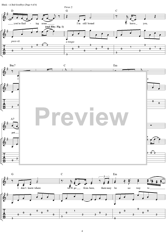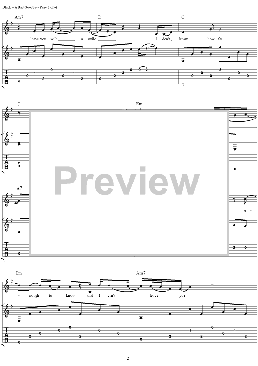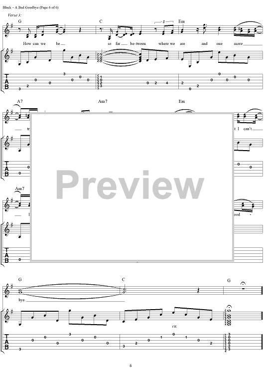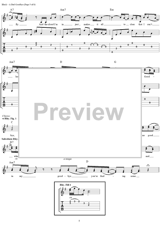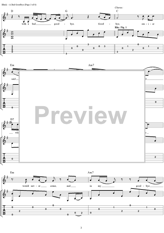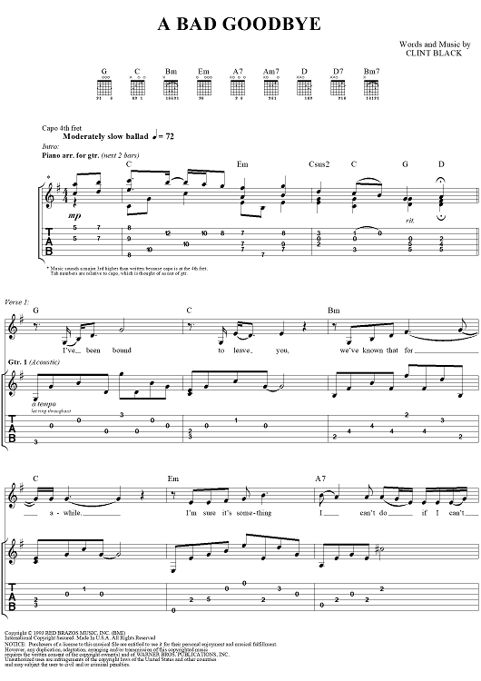 Digital Sheet Music for A Bad Goodbye by Clint Black scored for Guitar Tab/Vocal; id:118863