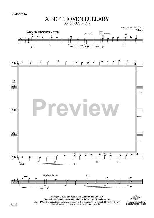 Digital Sheet Music for A Beethoven Lullaby - Air on Ode to Joy - Violoncello by Brian Balmages scored for String Orchestra; id:432057