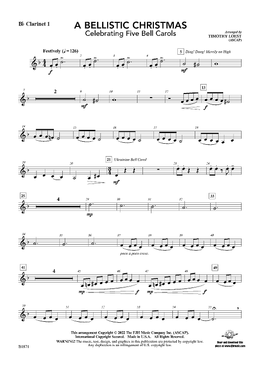 "A Bellistic Christmas - Bb Clarinet 1" Sheet Music by Traditional