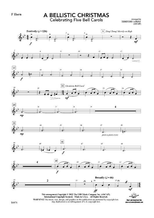 Digital Sheet Music for A Bellistic Christmas - F Horn by Traditional, Timothy Loest scored for Concert Band; id:498610