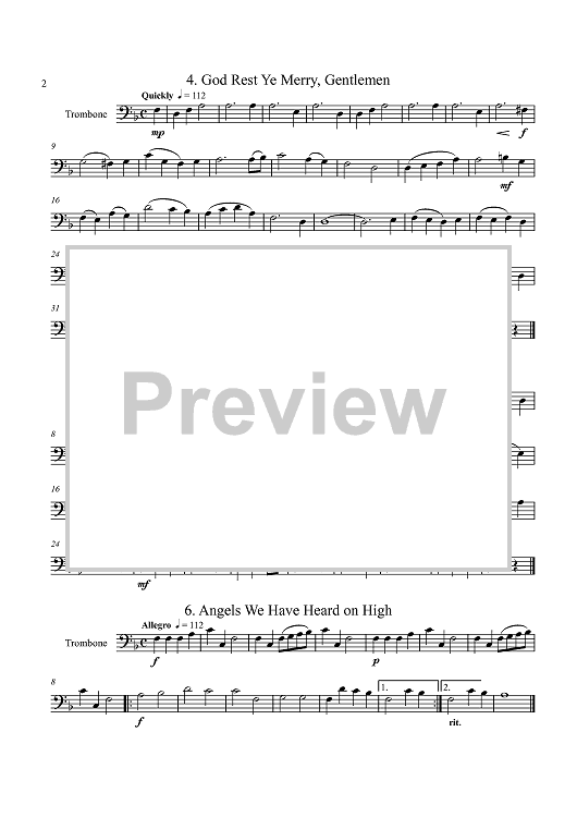 Digital Sheet Music for A Brass Quintet Christmas - Trombone by John Jay Hilfiger scored for Brass Quintet; id:358111