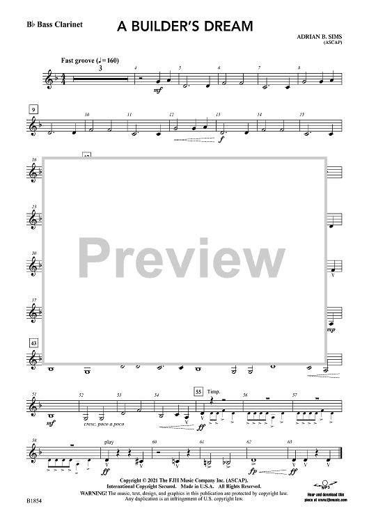 Digital Sheet Music for A Builder's Dream - Bb Bass Clarinet by Adrian B. Sims scored for Concert Band; id:501345