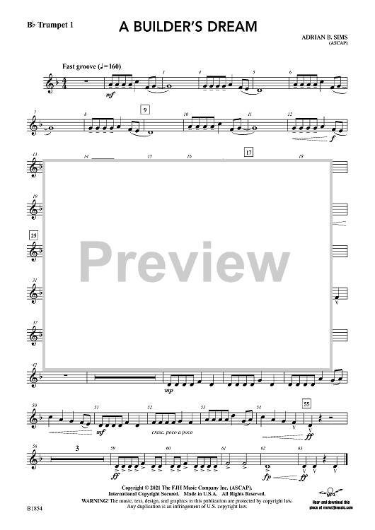 "A Builder's Dream - Bb Trumpet 1" Sheet Music by Adrian B. Sims