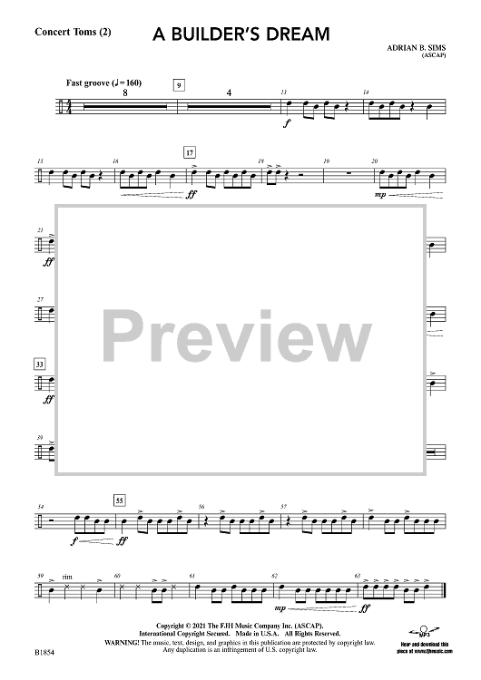 Digital Sheet Music for A Builder's Dream - Concert Toms by Adrian B. Sims scored for Concert Band; id:501360