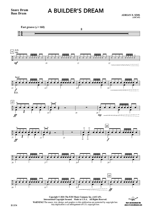 "A Builder's Dream - Snare Drum" Sheet Music by Adrian B. Sims