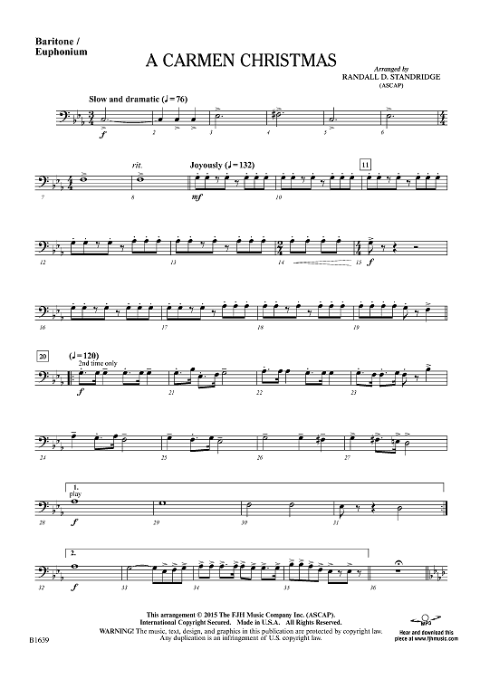 Digital Sheet Music for A Carmen Christmas - Baritone/Euphonium by Georges Bizet, Traditional, Randall D. Standridge scored for Concert Band; id:455114