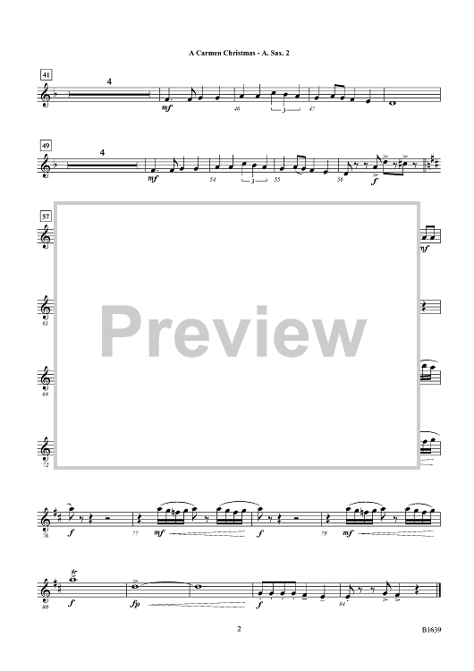 Digital Sheet Music for A Carmen Christmas - Eb Alto Sax 2 by Georges Bizet, Traditional, Randall D. Standridge scored for Concert Band; id:455106