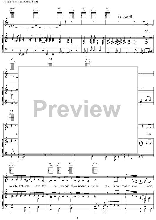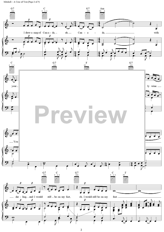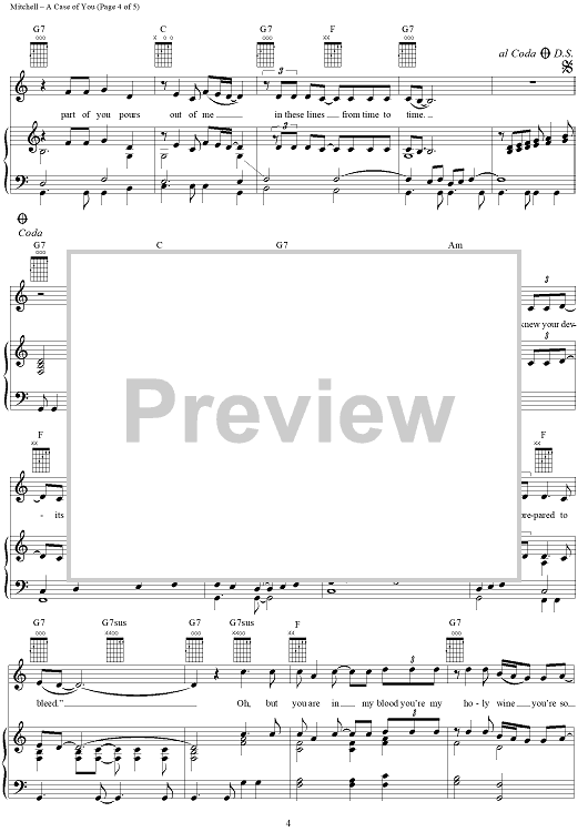 Digital Sheet Music for A Case Of You by Joni Mitchell scored for Piano/Vocal/Chords; id:241828