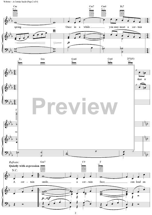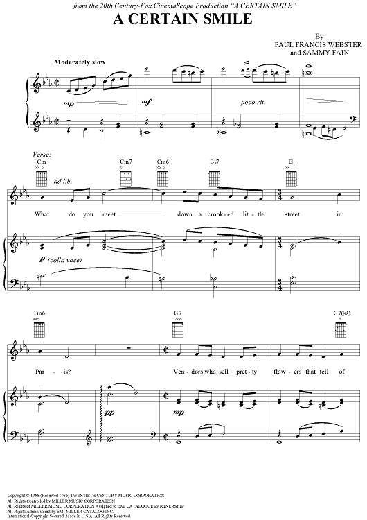 Digital Sheet Music for A Certain Smile by Johnny Mathis, Sammy Fain, Paul Francis Webster scored for Piano/Vocal/Chords; id:174498