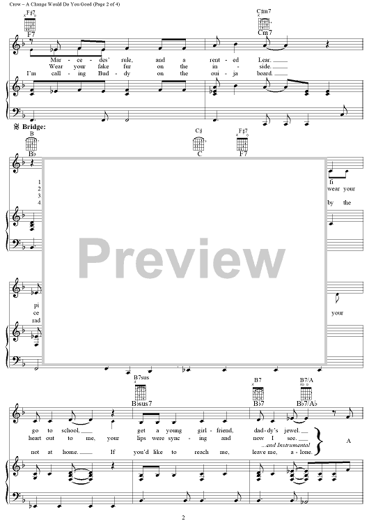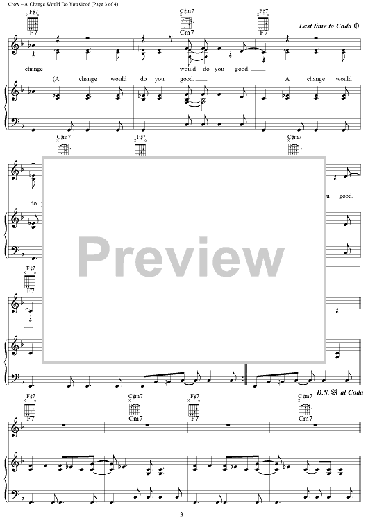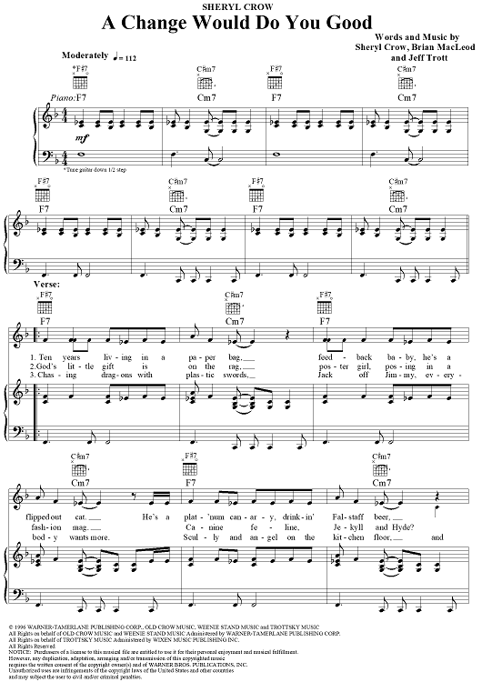 Digital Sheet Music for A Change Would Do You Good by Sheryl Crow, Brian MacLeod, Jeff Trott scored for Piano/Vocal/Chords; id:110790