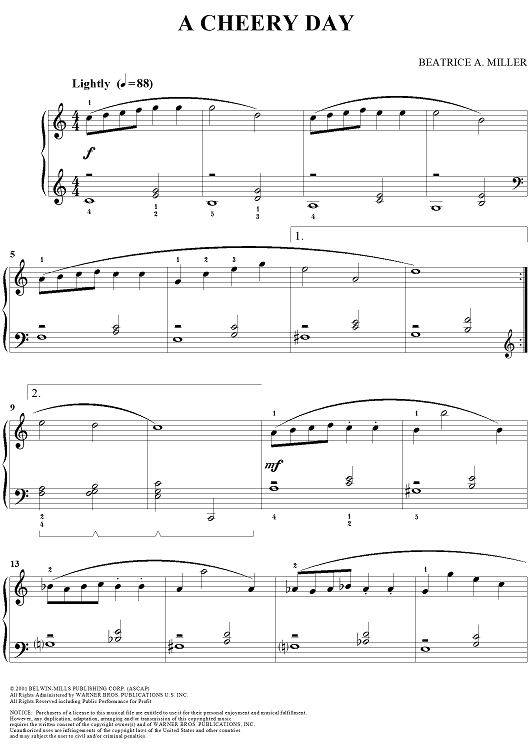 Digital Sheet Music for A Cheery Day by Beatrice A. Miller scored for Piano Solo; id:292732