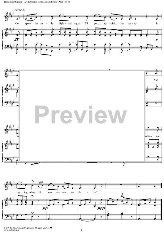 Digital Sheet Music for A Chieftan to the Highlands Bound by , Edward Bunting, Thomas Campbell, Traditional scored for Piano/Vocal; id:260779