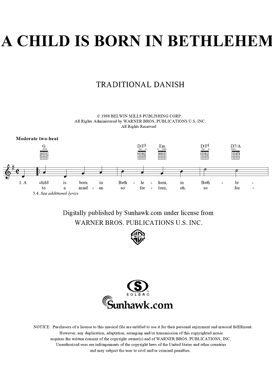 "A Child is Born in Bethlehem" Sheet Music by Traditional