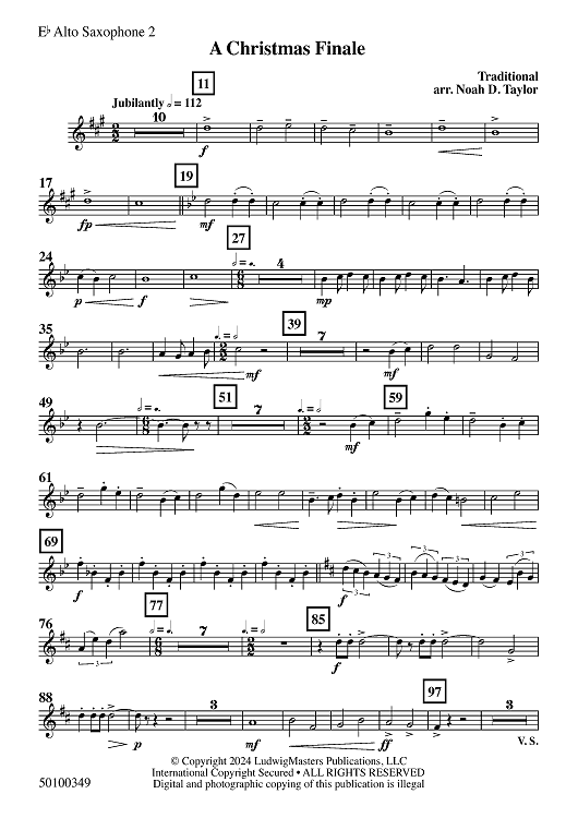 "A Christmas Finale - Eb Alto Sax 2" Sheet Music by Noah Taylor