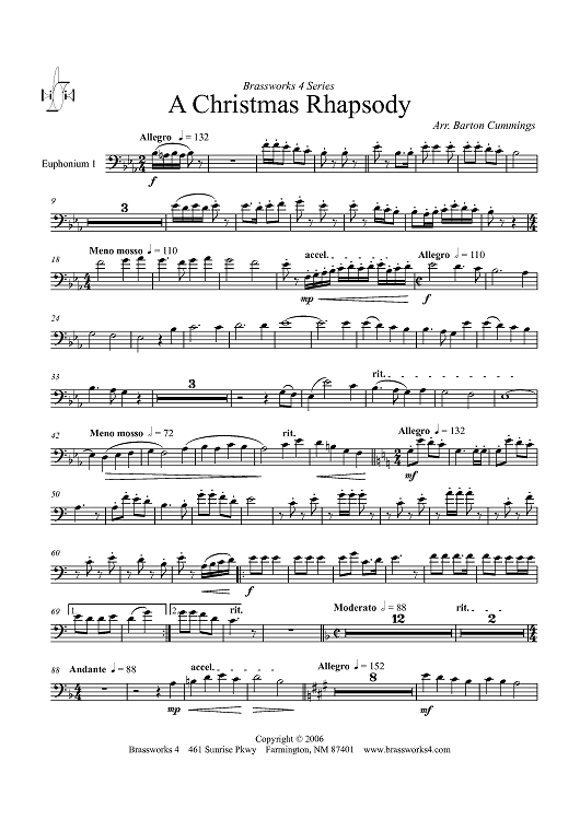 Digital Sheet Music for A Christmas Rhapsody - Euphonium 1 BC by Barton Cummings scored for Tuba/Euphonium Quartet; id:358168
