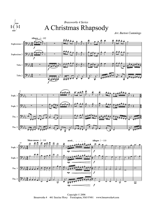 Digital Sheet Music for A Christmas Rhapsody - Score by Barton Cummings scored for Tuba/Euphonium Quartet; id:358167