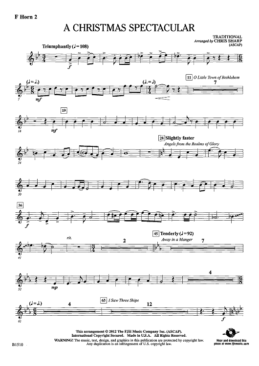 Digital Sheet Music for A Christmas Spectacular - F Horn 2 by Traditional, Chris Sharp scored for Concert Band; id:442407