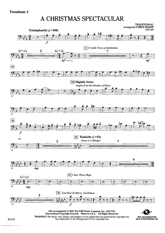 Digital Sheet Music for A Christmas Spectacular - Trombone 2 by Traditional, Chris Sharp scored for Concert Band; id:442409