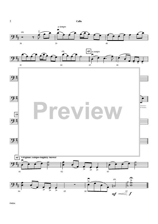 "A Country Memory - Cello" Sheet Music by Alan Lee Silva