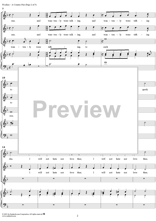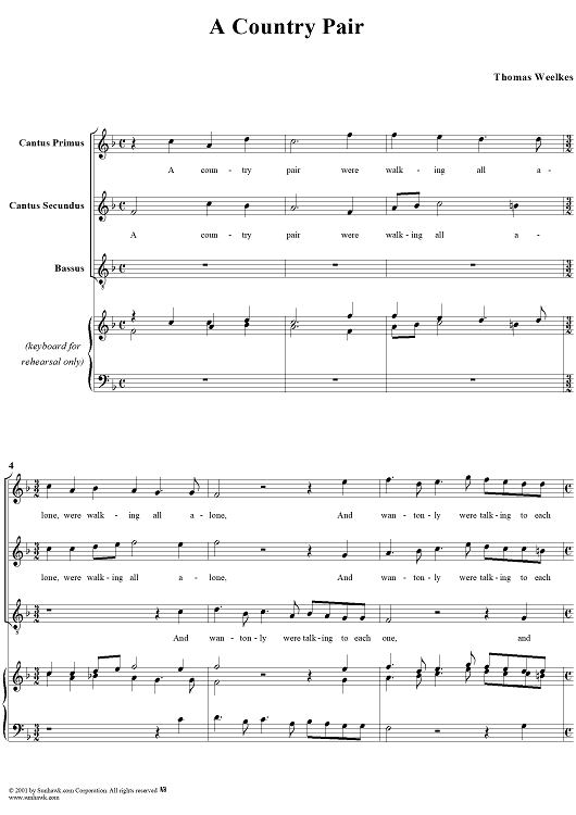 Digital Sheet Music for A Country Pair by Thomas Weelkes scored for Three-part Mixed Chorus; id:262106
