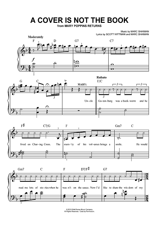 Digital Sheet Music for A Cover Is Not A Book - from Mary Poppins Returns by Marc Shaiman, Scott Wittman scored for Easy Piano/Vocal/Chords; id:467060