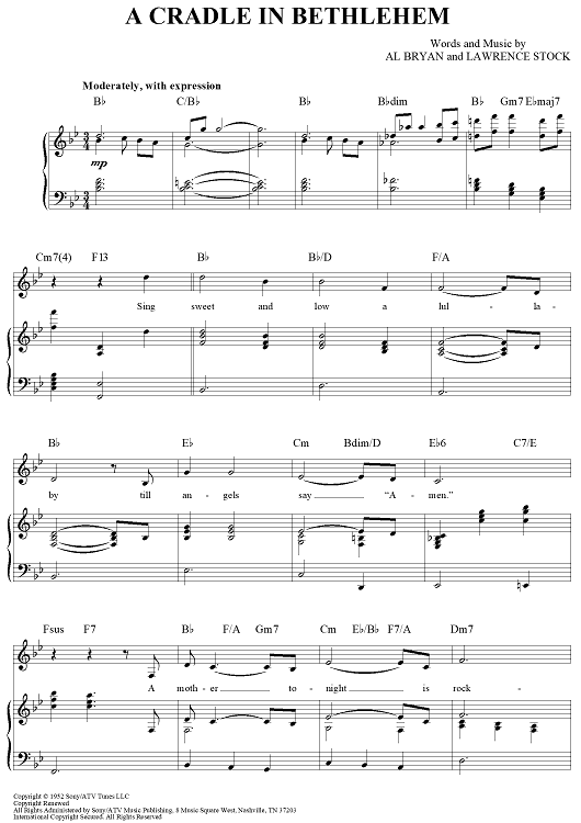 Digital Sheet Music for A Cradle in Bethlehem by Vince Gill, Alfred Bryan, Lawrence Stock scored for Piano/Vocal/Chords; id:366841