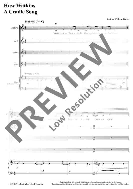 "A Cradle Song - Choral Score" Sheet Music by Huw Watkins