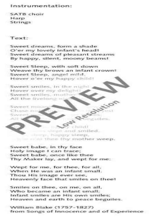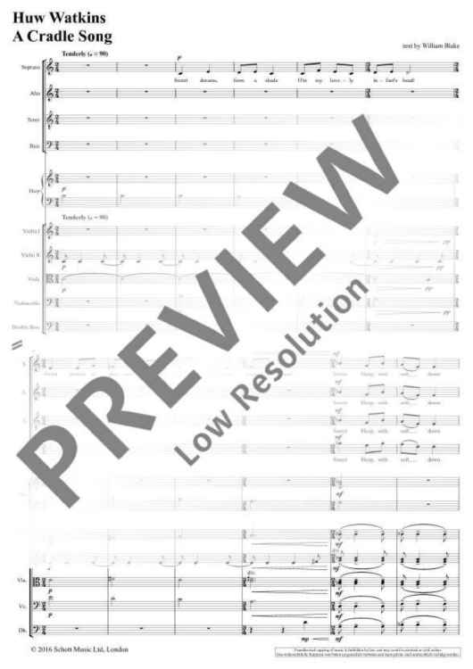 Digital Sheet Music for A Cradle Song - Full Score by Huw Watkins scored for Mixed Choir (satb), Harp And String Orchestra; id:491236