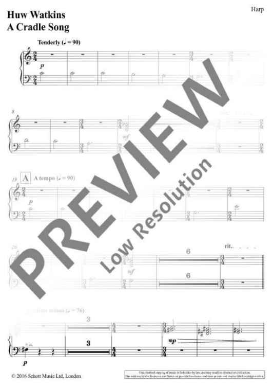 "A Cradle Song - Harp" Sheet Music by Huw Watkins
