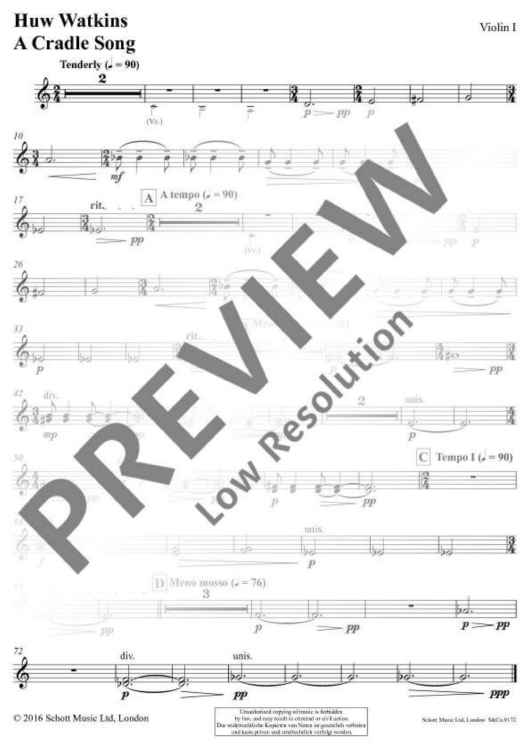 "A Cradle Song - Violin 1" Sheet Music by Huw Watkins