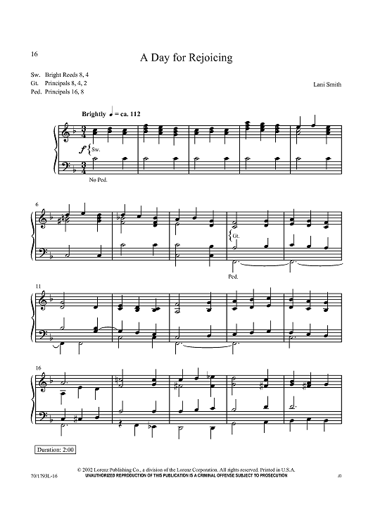 Digital Sheet Music for A Day for Rejoicing by , Lani Smith scored for Organ Solo; id:434513