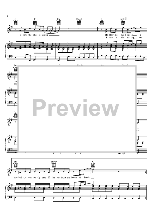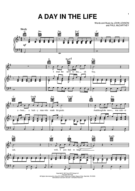 Digital Sheet Music for A Day In The Life by Paul McCartney, The Beatles, John Lennon scored for Piano/Vocal/Chords; id:372378