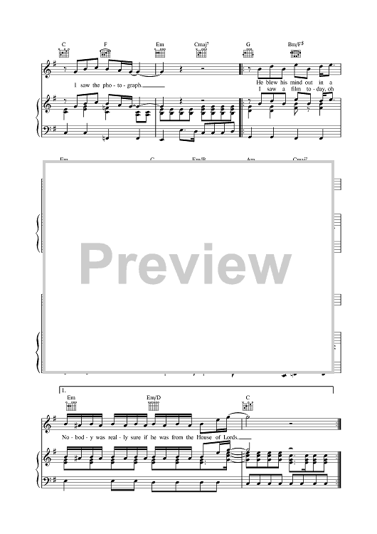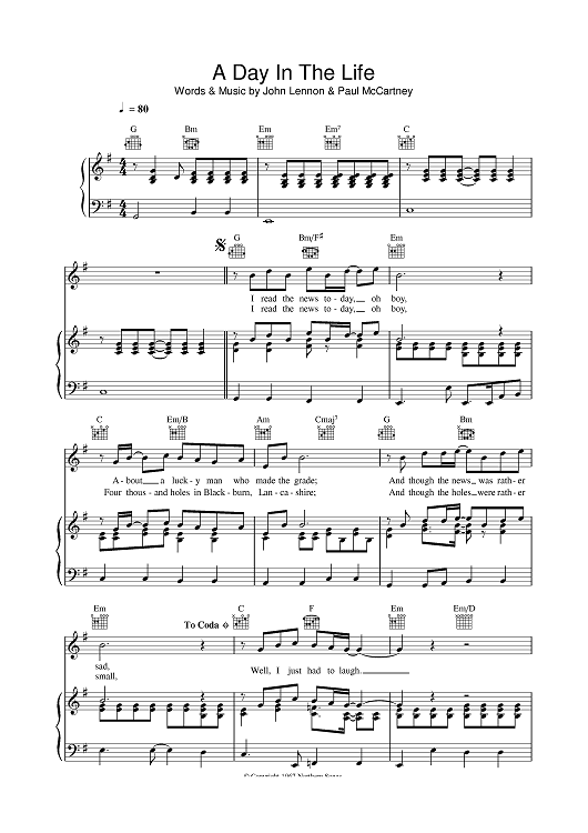 Digital Sheet Music for A Day in The Life by Paul McCartney, The Beatles, John Lennon scored for Piano/Vocal/Chords; id:379000