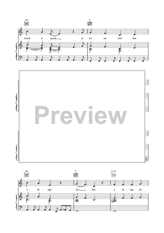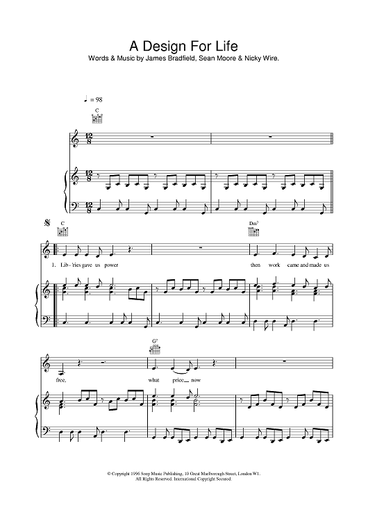 Digital Sheet Music for A Design For Life by The Manic Street Preachers scored for Piano/Vocal/Chords; id:379032