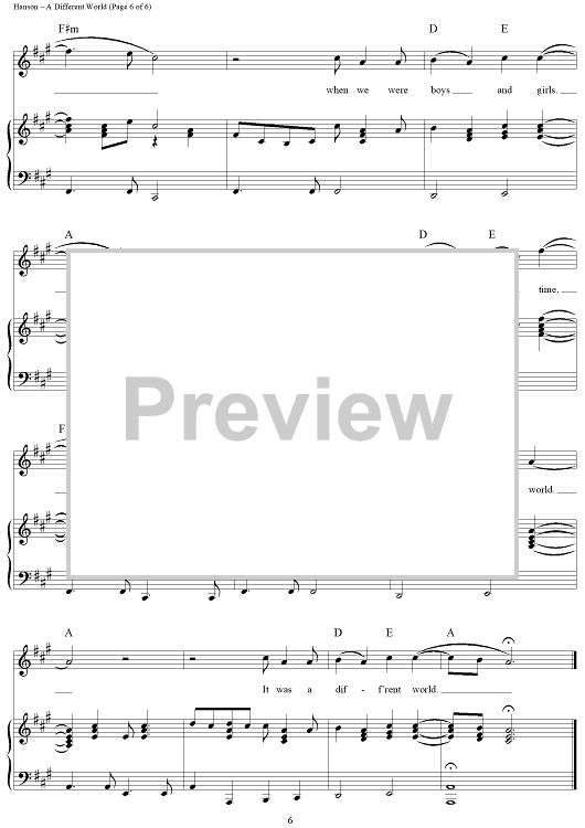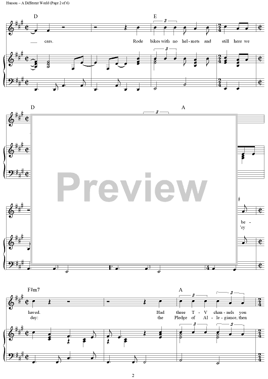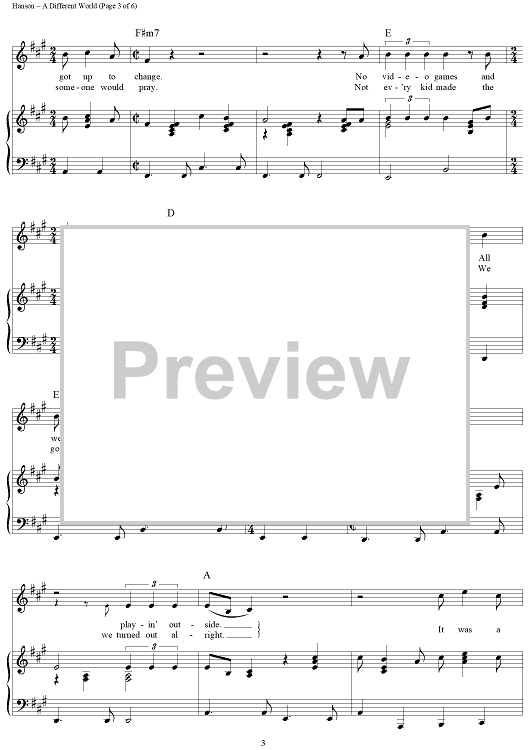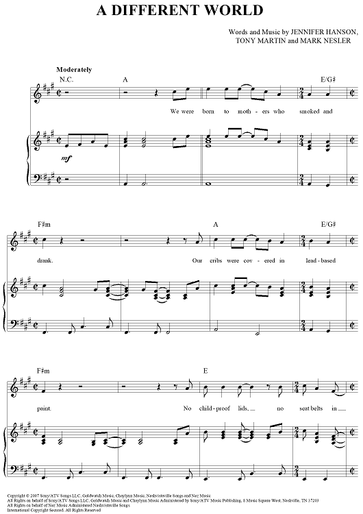 Digital Sheet Music for A Different World by Tony Martin, Mark Nesler, Jennifer Hanson, Bucky Covington scored for Piano/Vocal/Chords; id:363248