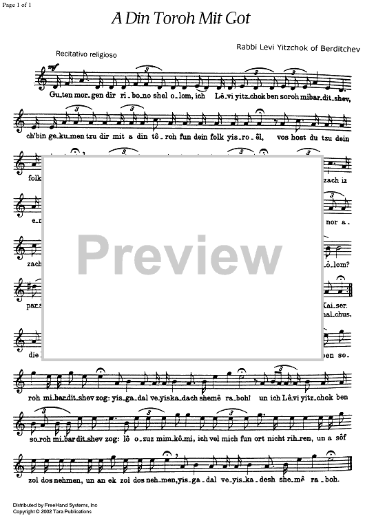 "A Din Toroh Mit Got - Score" Sheet Music by Rabbi Levi Yitzchok of Berditchev