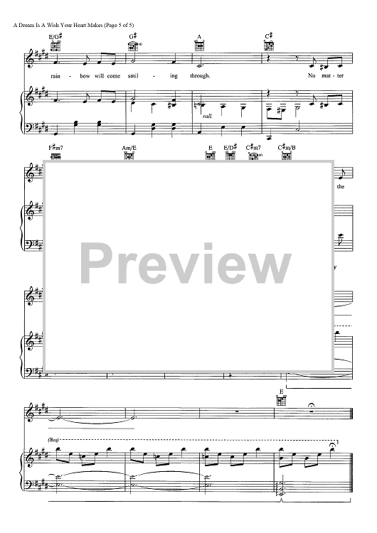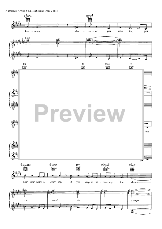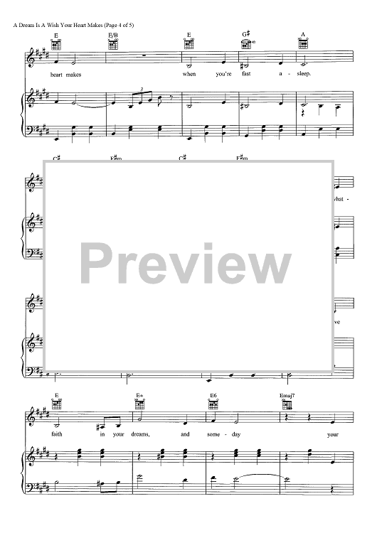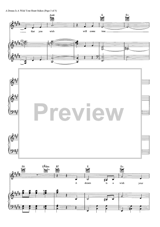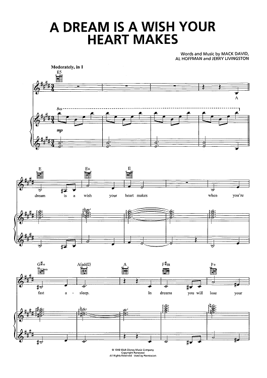 Digital Sheet Music for A Dream Is A Wish Your Heart Makes by Jerry Livingston, Mack David, Al Hoffman scored for Piano/Vocal/Chords; id:452957