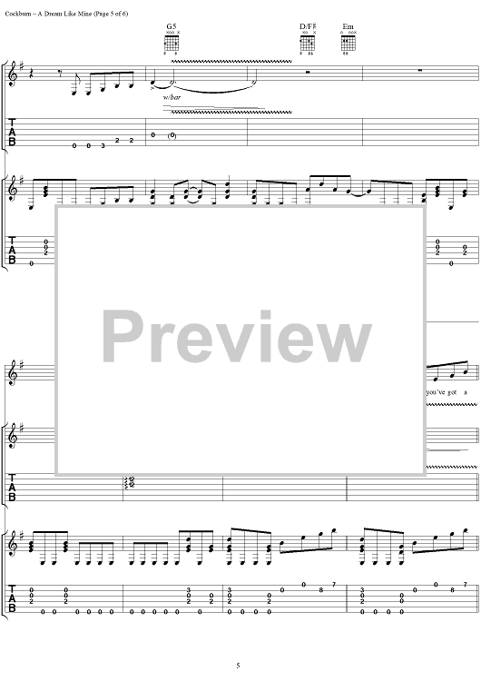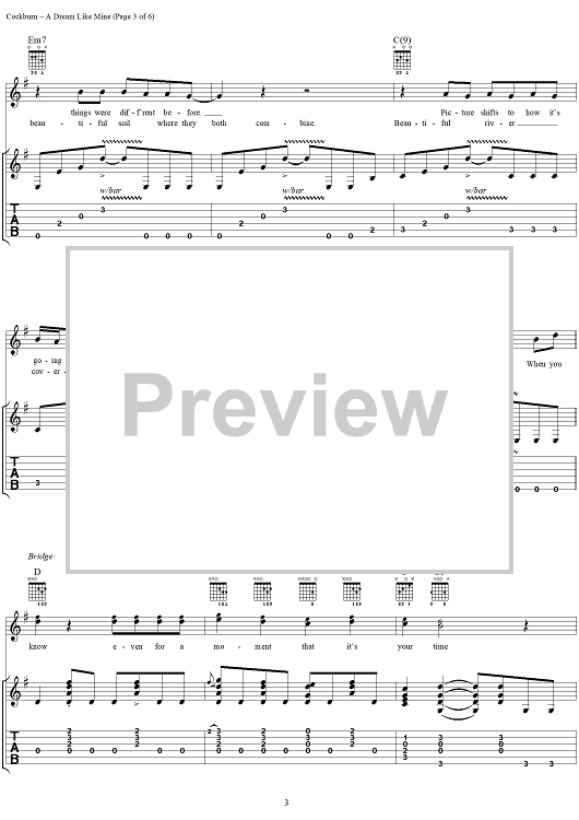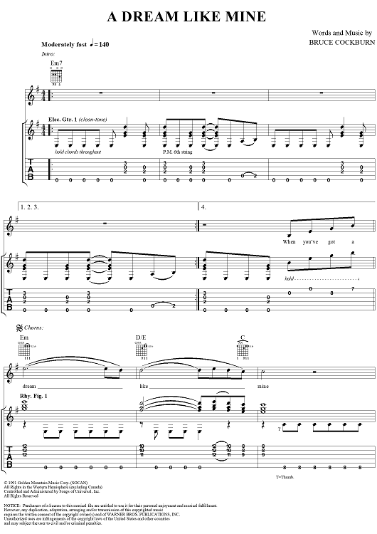 Digital Sheet Music for A Dream Like Mine by Bruce Cockburn scored for Guitar Tab/Vocal; id:292084