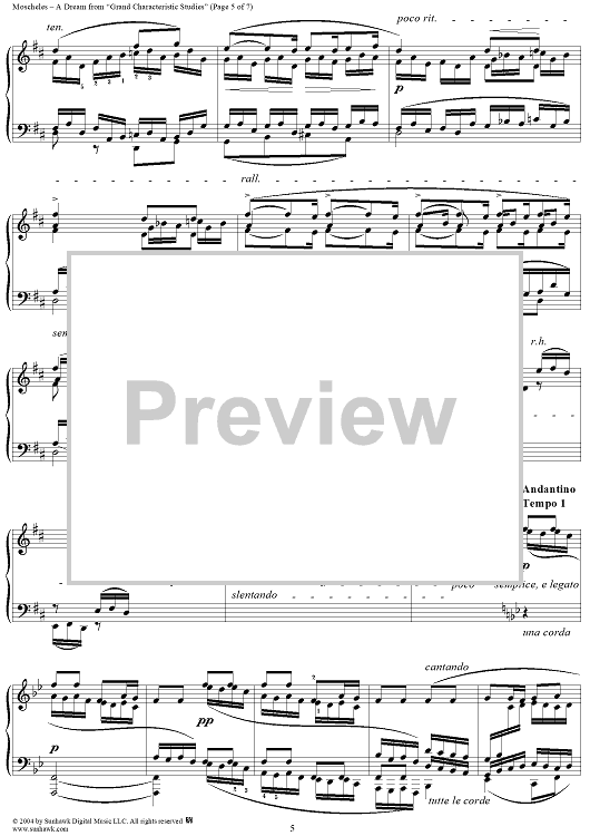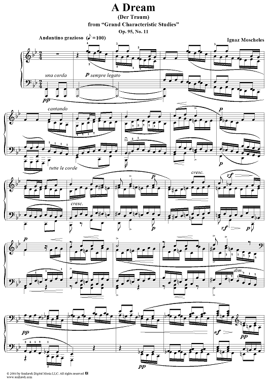 Digital Sheet Music for A Dream, Op. 95, No. 11 by Ignaz Moscheles scored for Piano Solo; id:294398
