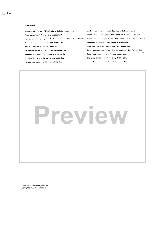 "A Dudele - Lyrics" Sheet Music by Rabbi Levi Yitzchok of Berditchev