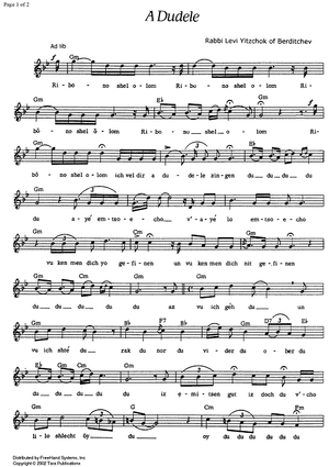 "A Dudele - Score" Sheet Music by Rabbi Levi Yitzchok of Berditchev
