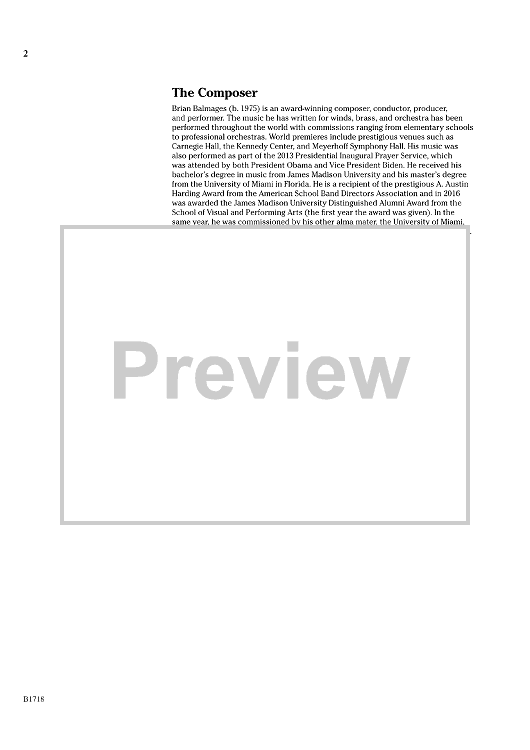 This powerful and driving overture is the perfect way to kick off your holiday program! Featuring a mix of original themes and holiday favorites, this work does not sound like a medley; rather, it is a powerful fanfare featuring snippets of holiday favorites that span from lyrical to soaring! (2:00)