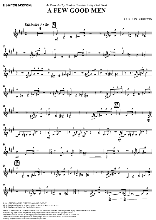 Digital Sheet Music for A Few Good Men - Baritone Saxophone by Gordon Goodwin, Gordon Goodwin's Big Phat Band scored for Jazz Ensemble; id:308741