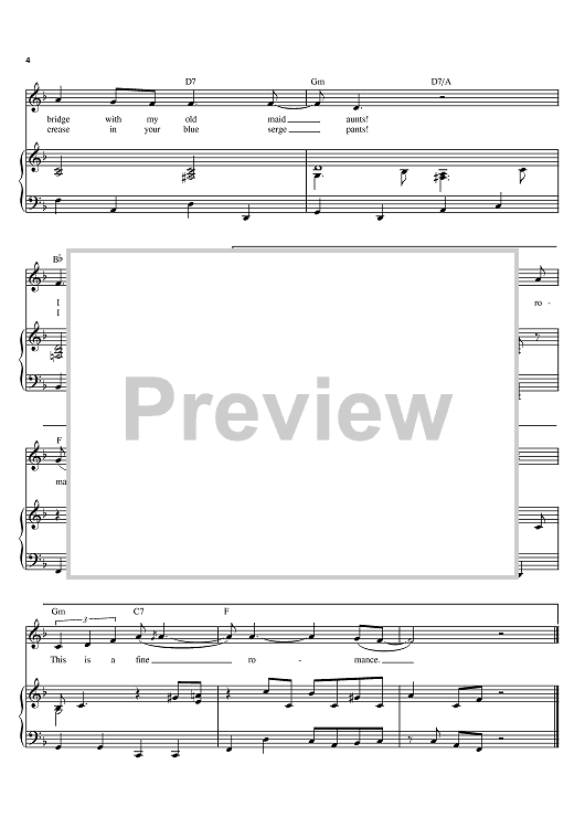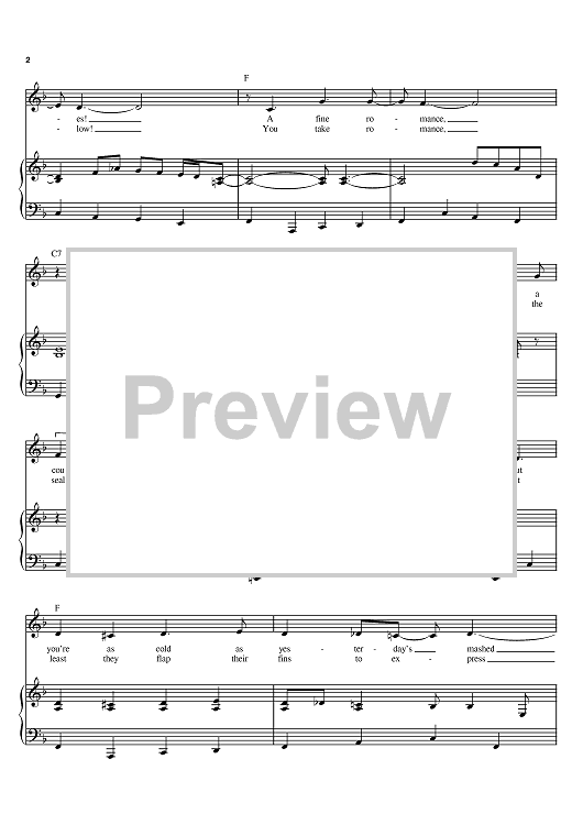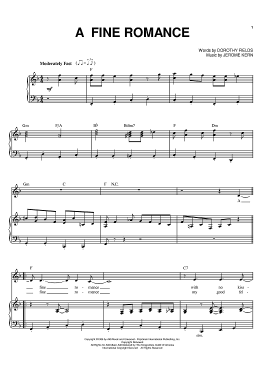 Digital Sheet Music for A Fine Romance by Fred Astaire, Billie Holiday, Jerome Kern, Ella Fitzgerald, Dorothy Fields scored for Piano/Vocal/Chords; id:374845