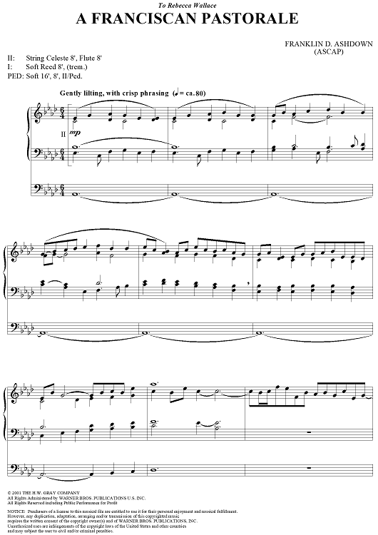 Digital Sheet Music for A Franciscan Pastorale by Franklin D. Ashdown scored for Organ Solo; id:283345