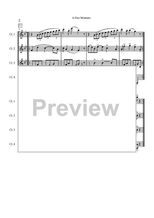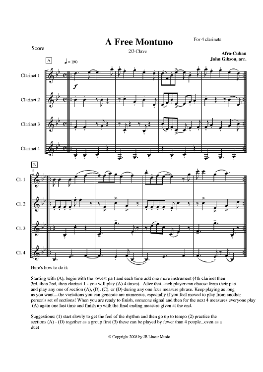 Digital Sheet Music for A Free Montuno by John Gibson, Afro-Cuban Melody scored for Clarinet Quartet; id:423856