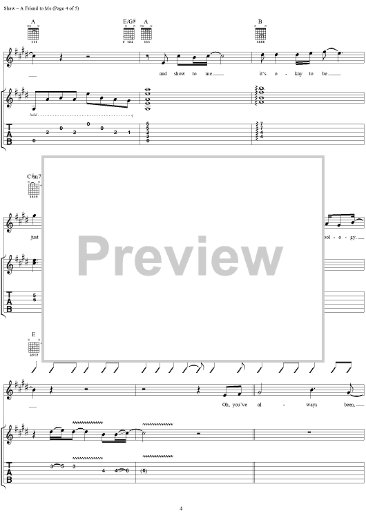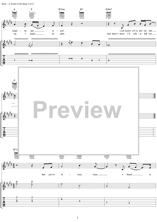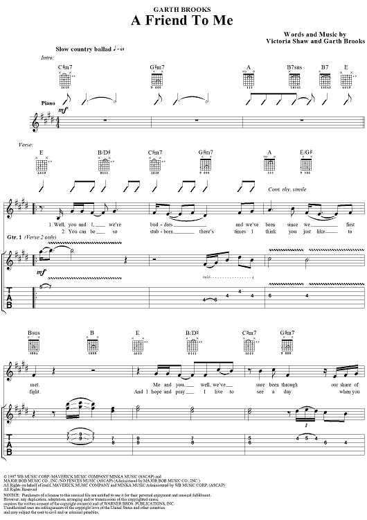 Digital Sheet Music for A Friend To Me by Garth Brooks, Victoria Shaw scored for Guitar Tab/Vocal; id:111842