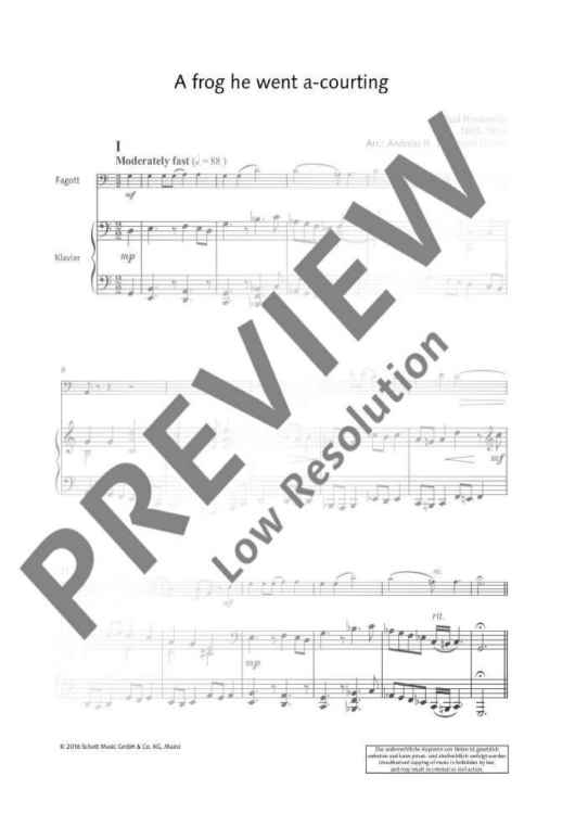 Originally composed for piano and violoncello in 1941, the 13 short variations are now available in an arrangement for bassoon and chamber orchestra. This piece by Paul Hindemith is a musical setting of a well-known Old English children's song about the wedding of a frog and a mouse. Each of the cheerful variations in classical style is allocated to a rhyming couplet from the song.