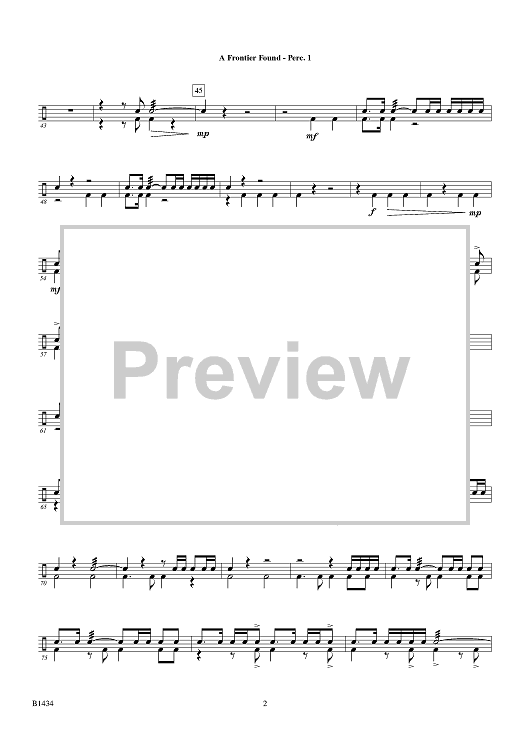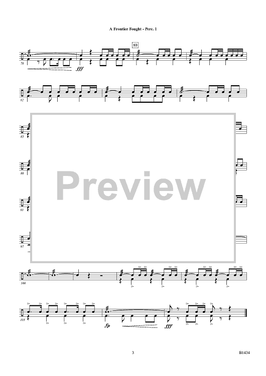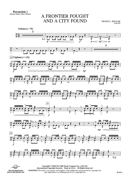 Digital Sheet Music for A Frontier Fought and a City Found - Percussion 1 by Travis J. Weller scored for Concert Band; id:415674