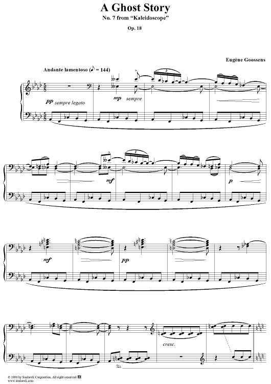 "A Ghost Story - No. 7 from "Kaleidoscope" Op. 18" Sheet Music by Eugene Goossens